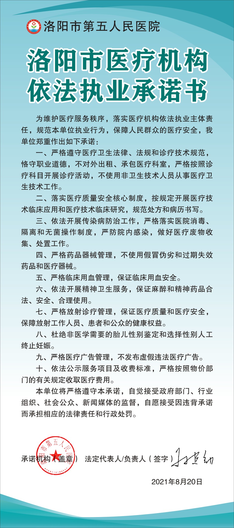 洛阳市福利吧机构依法执业承诺书
