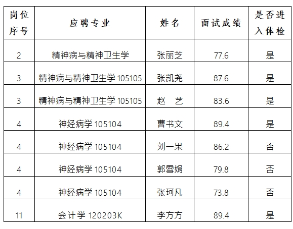 根据《2024年洛阳市卫生健康委员会下属事业单位招才引智工作实施方案》,福利吧 招才引智面试工作已经完成。现将面试成绩及进入体检人员名单予以公示。