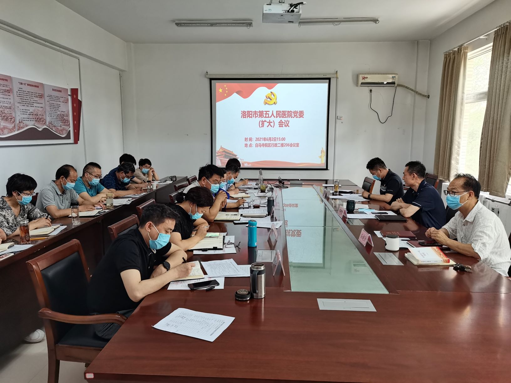 为确保医院党史学习教育、党风廉政建设、市委巡察整改及信访稳定工作有序推进、取得实效,6月2日下午,我院党委召开党委(扩大)会议,传达市卫健委有关会议精神,研究部署下一阶段工作任务。会议由党委书记刘洪涛同志主持,医院领导班子全体成员、12个职能科室负责人参加会议。