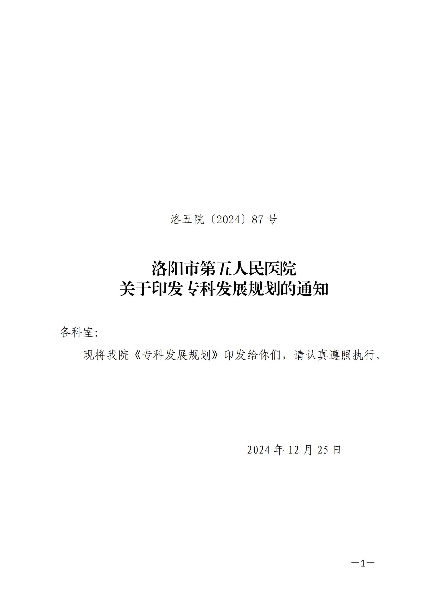 2024年院字87号专科发展规划